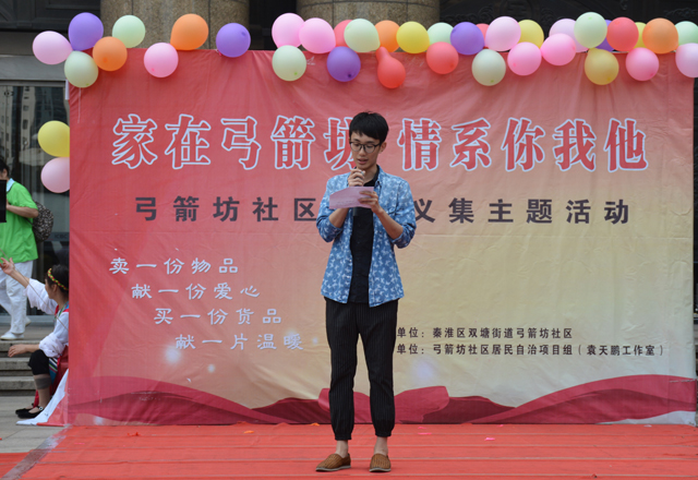 义卖活动于9月19日下午3点在省工商银行门口正式开启,义卖人员为扬子晚报小记者站的小记者们,还有来自弓箭坊社区的居民们。他们带上了家里的闲置物品和各种各样的小玩意儿来作为义卖品。南京仁品也为小记者们提供了相当可观的物品。此外,义卖活动现场还有才艺表演和互动活动。